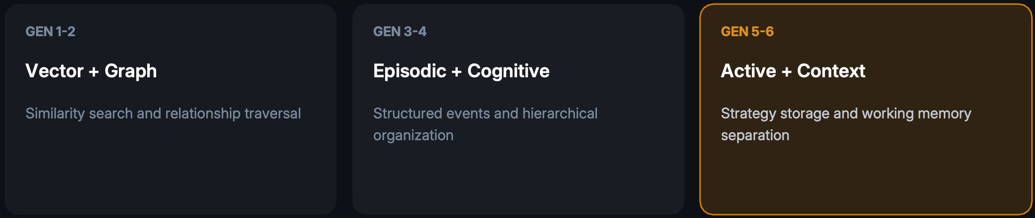 This article explores six generations of memory systems and introduces the concept of separating long-term memory from working context.