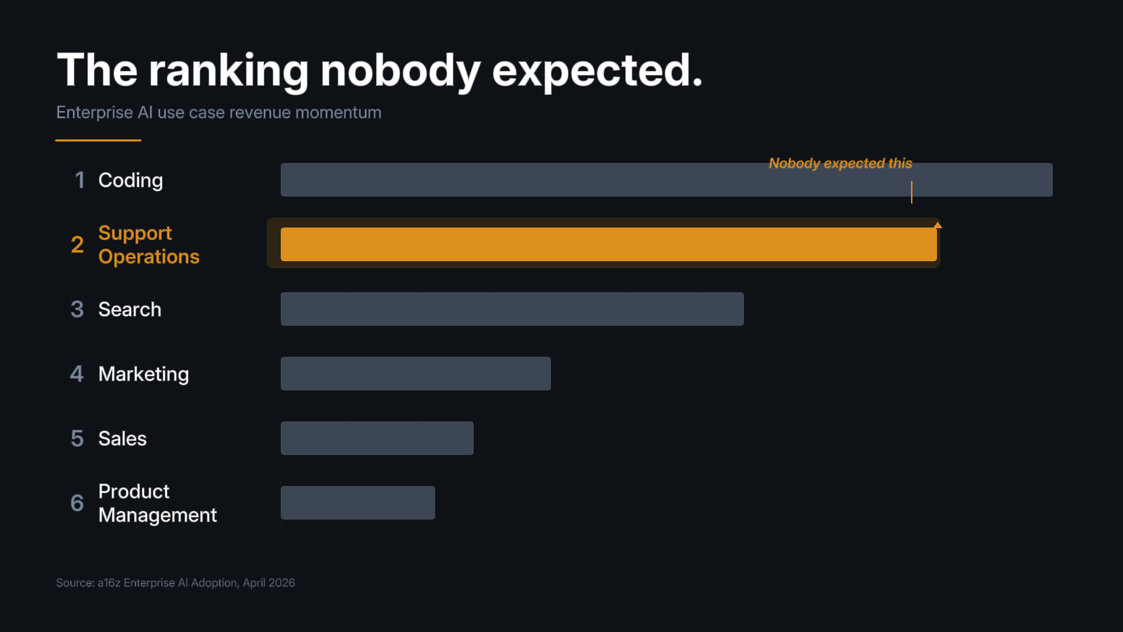 a16z's data confirms what practitioners have been measuring quietly for years. Support investigation is one of the largest, most structurally suitable AI use cases in enterprise software. The models are capable. The enterprise buyer is ready. The structural fit is verified.
