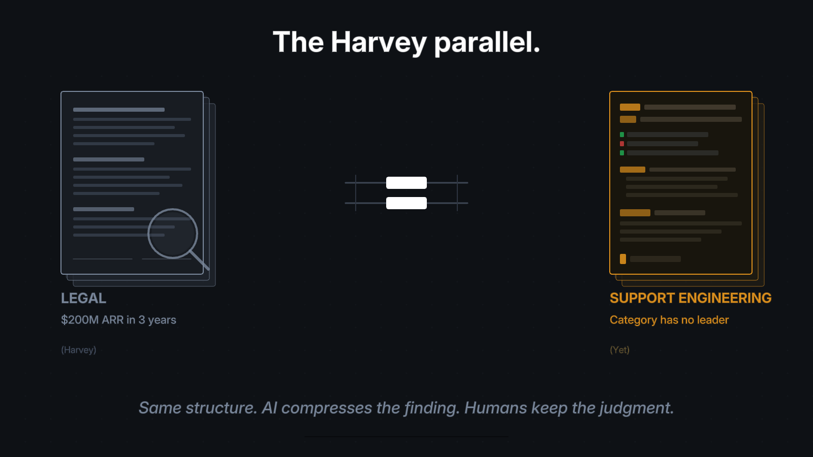 Harvey didn't just automate legal work. It automated legal investigation. The parallel to support engineering investigation is structural, not metaphorical.